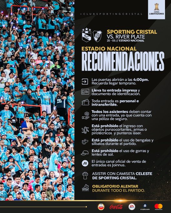 Recomendaciones de Sporting Cristal para los que asistan al estadio hoy.