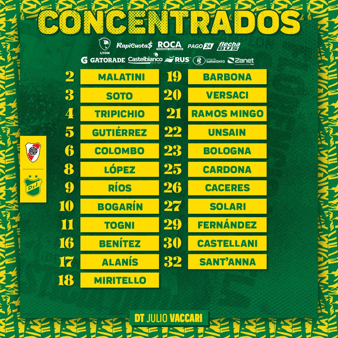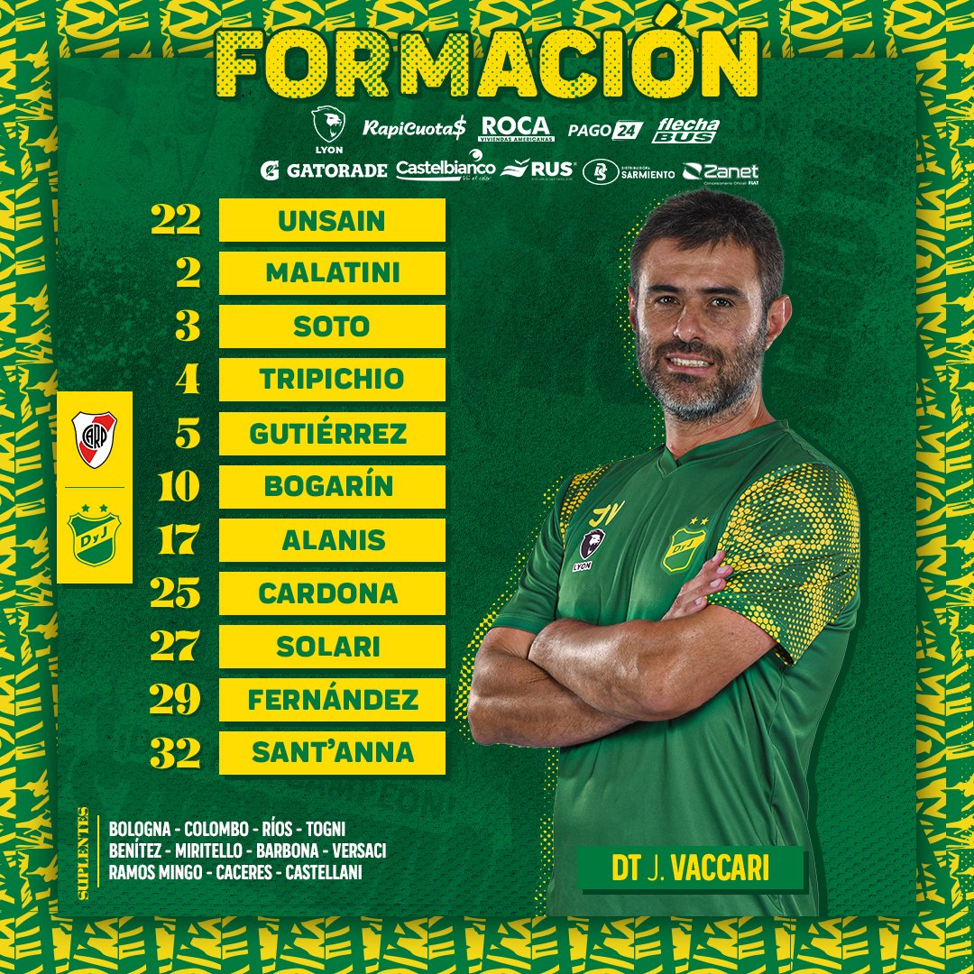 Defensa y Justicia: Luis Unsain; Agustín Sant’Anna, Julián Malatini, Tomás Cardona, Alexis Soto; Nicolás Tripicchio, Julián López; Gabriel Alanís, David Barbona, Gastón Togni; Nicolás Fernández.