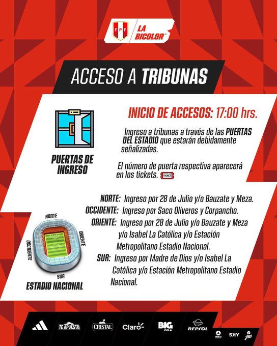 As sern los accesos al coloso de Jos Daz para el duelo de #LaBicolor ante @Argentina .#UnSentimientoQueNosUne pic.twitter.com/dySeaOEJTe