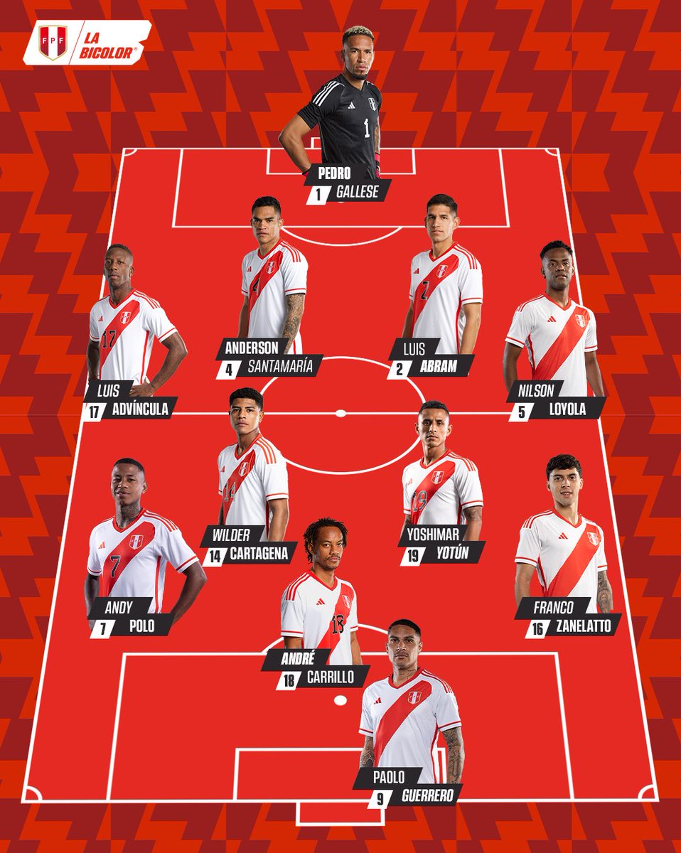Perú: Pedro Gallese, Luis Advíncula, Miguel Araujo, Alexander Callens, Miguel Trauco, Pedro Aquino, Yoshimar Yotún, Bryan Reyna, Andy Polo, Christofer Gonzáles y Paolo Guerrero.