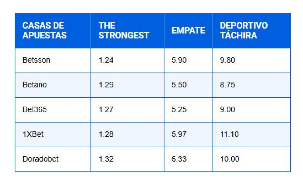 Sobre el papel, The Strongest se perfila como favorito para llevarse la victoria ante Deportivo Táchira por este duelo de Copa Libertadores 2026. Dicho ello, te damos a conocer las cuotas que brindan las casas de apuestas a los millones de aficionados: