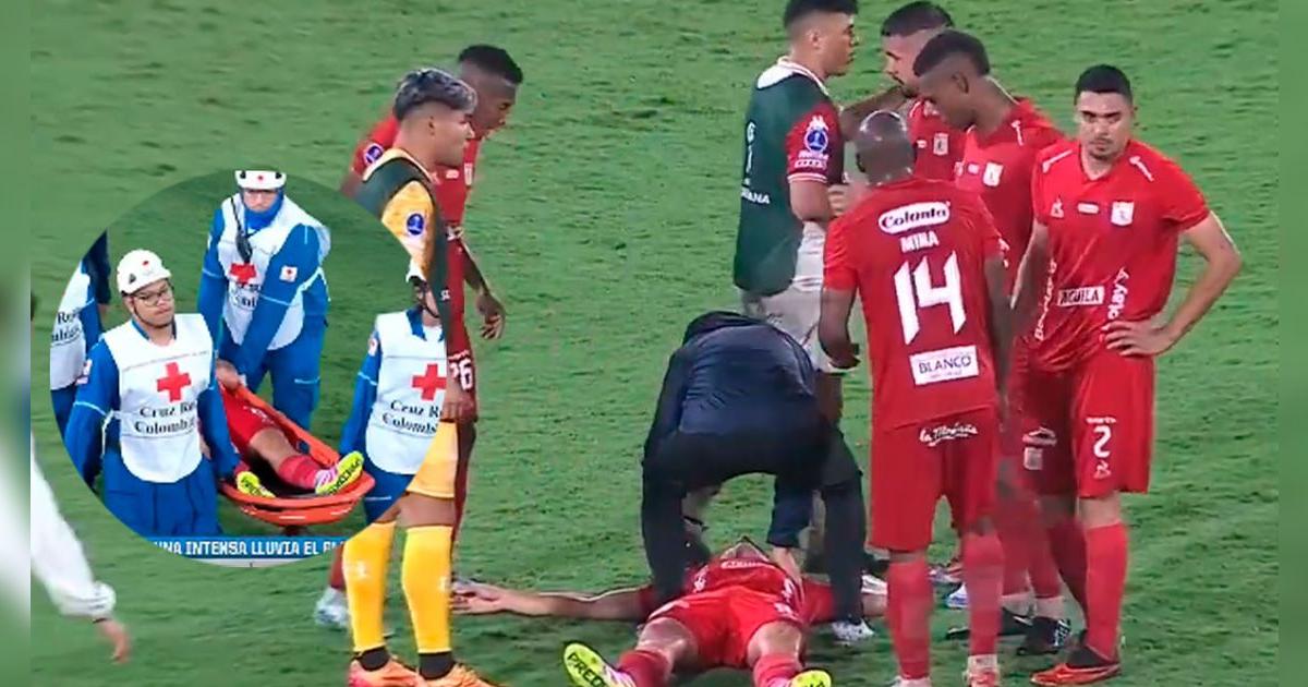 El delantero Luis Ramos dejó el campo del Estadio Olímpico Pascual Guerrero en camilla, tras sufrir un duro golpe. América de Cali no se pronunció sobre su estado del jugador peruano. Los hinchas están preocupados por su salud.