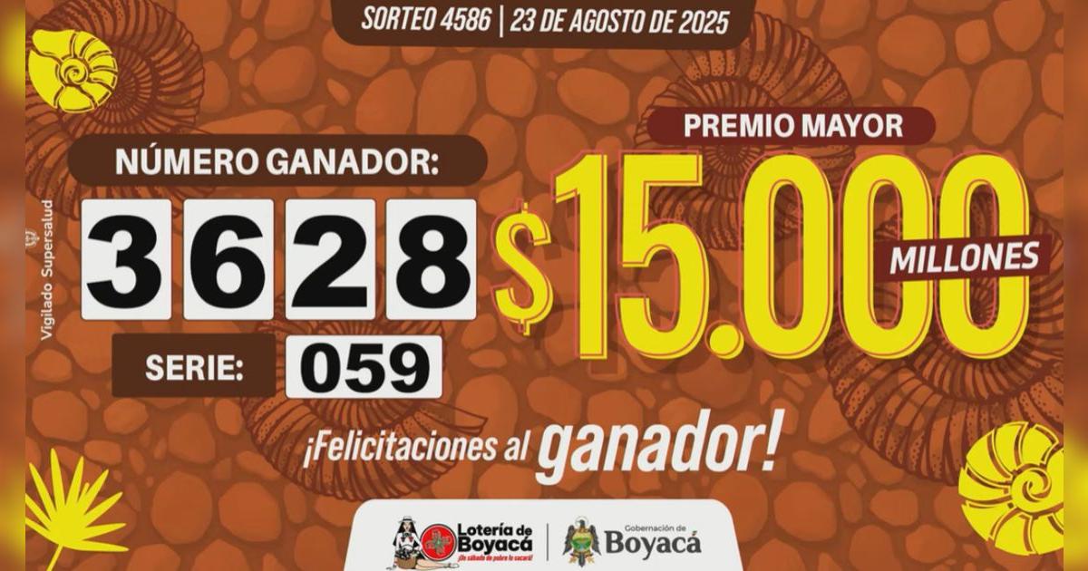 ÚLTIMO RESULTADO Lotería de Boyacá del sábado 23 de agosto: números ganadores del sorteo 4586