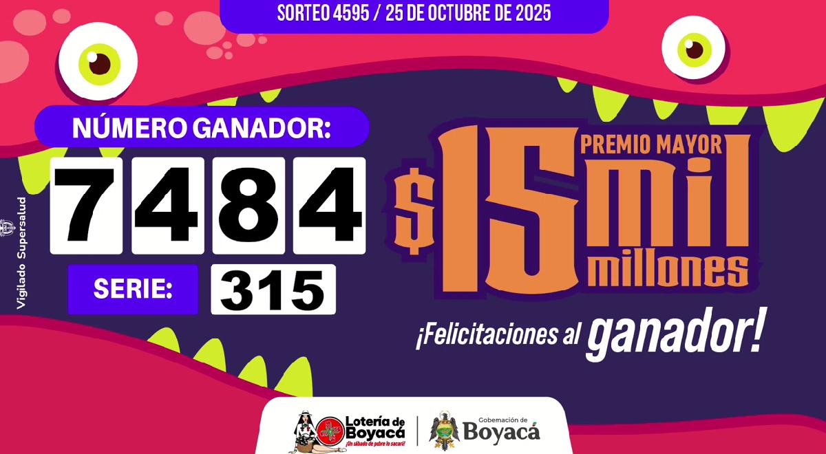El sábado 25 de octubre se llevó a cabo una nueva edición de la Lotería de Boyacá, que ofrecía un atractivo pozo de 15.000 millones de pesos. Este sorteo, correspondiente a la edición 4595, ya reveló su lista de afortunados ganadores, y AQUÍ podrás revisar los resultados.
