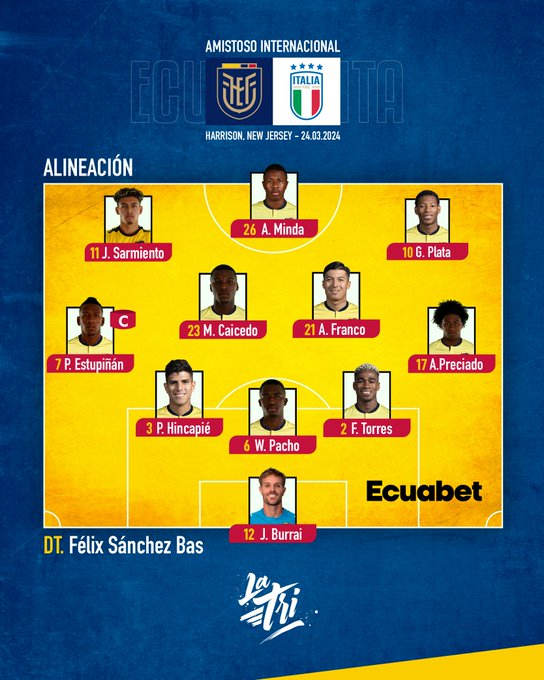 - alineaciones ecuador vs. italia