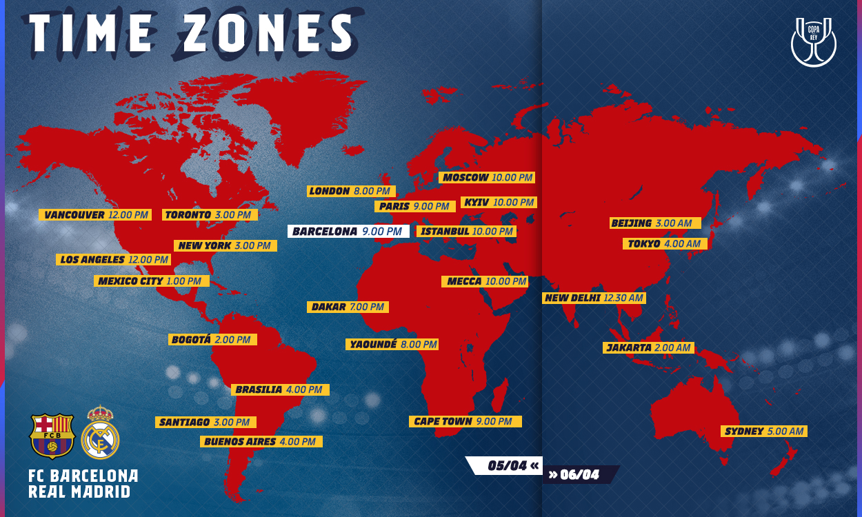 A continuación te mostramos los horarios de distintos países para que no te pierdas el clásico por el pase a la final de la Copa del Rey.