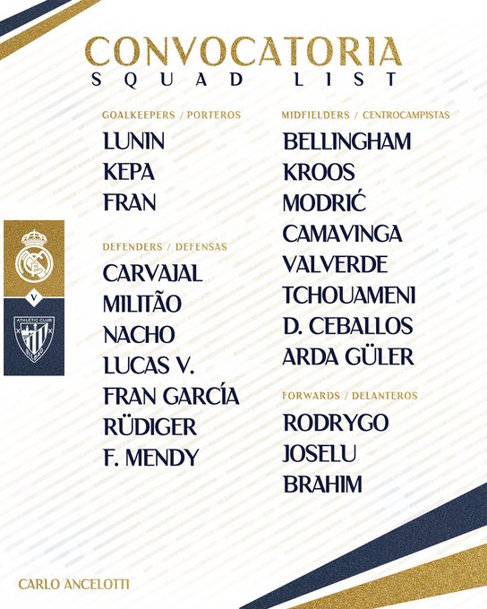 El partido Real Madrid-Athletic Club se juega el domingo 31 de marzo 2024 en el estadio Santiago Bernabéu, casa del conjunto merengue dirigido por Carlo Ancelotti.