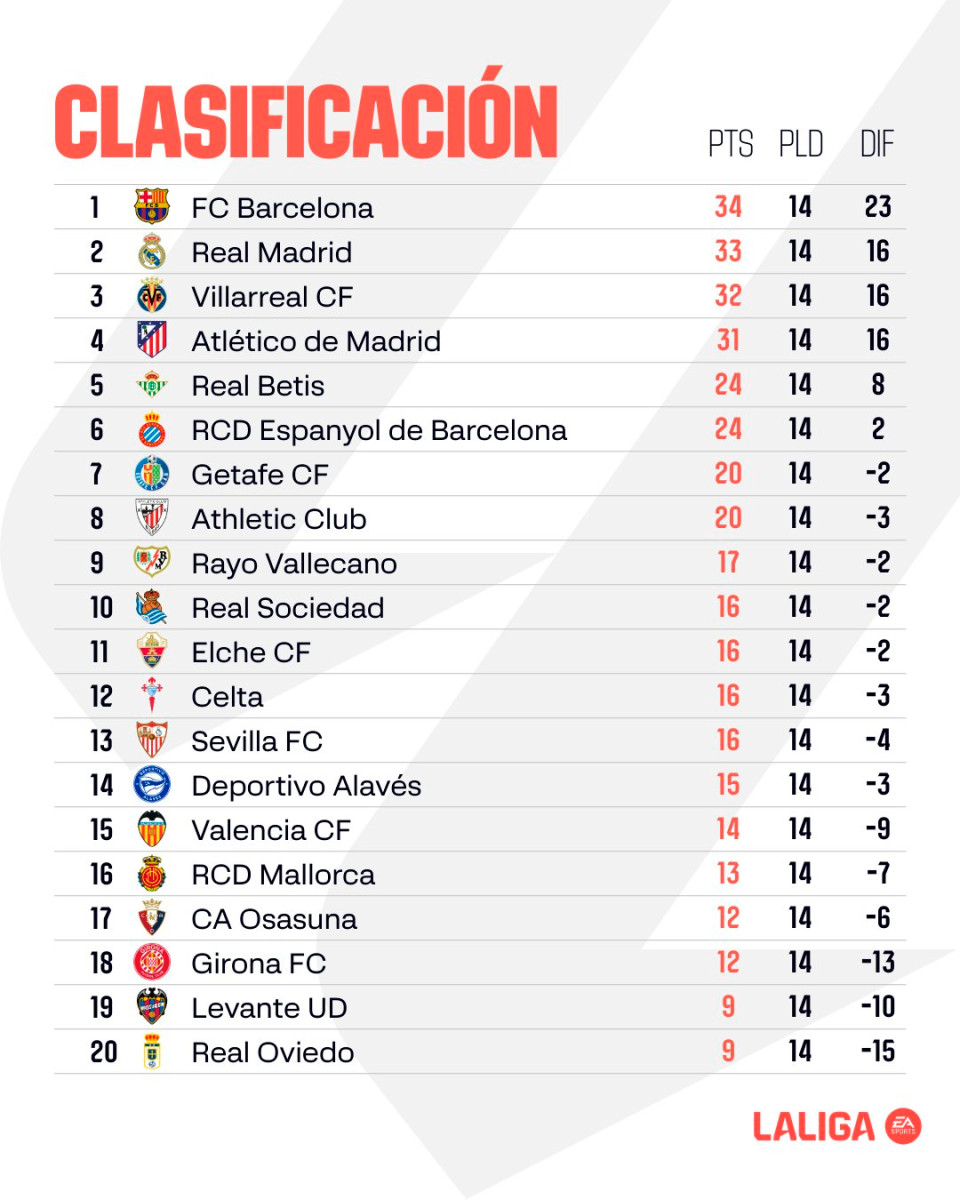 El FC Barcelona de Hansi Flick buscará reafirmar su primer lugar en la tabla de posiciones de LaLiga 2025/26.