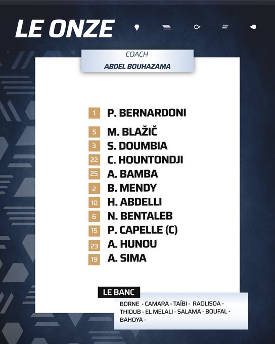 Angers: Bernardoni; Yan Valery, Hountondji, Miha Blazic, Suleyman; Batista Mendy, H. Abdelli, Hunou; El Melali, Pierre Capelle, A. Sima.