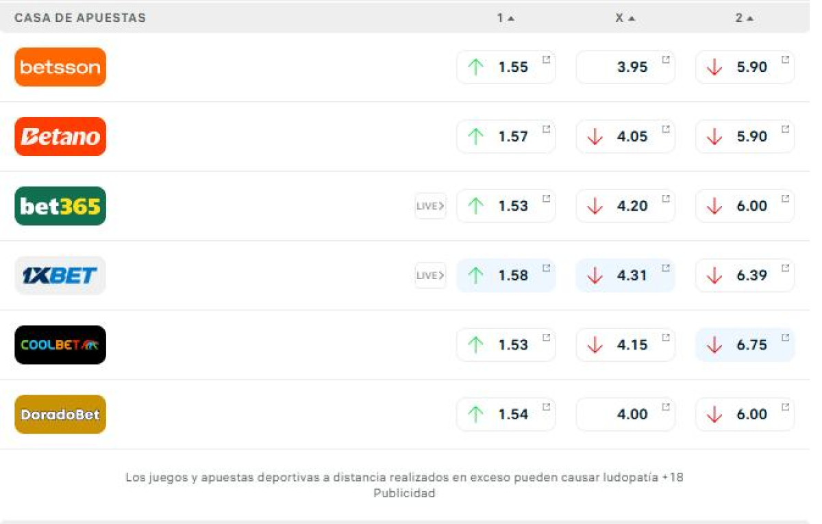 Estas son las principales cuotas en las distintas casas de apuestas:
