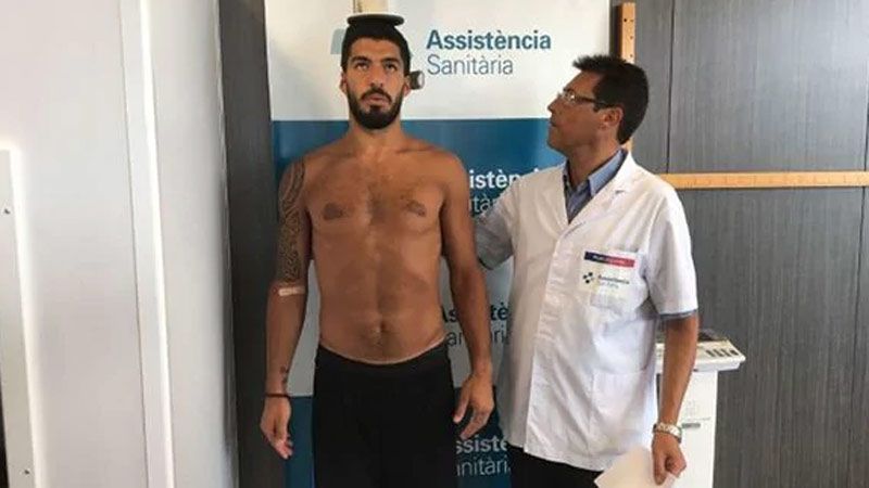 El delantero uruguayo Luis Suárez puso fin a sus vacaciones y ya está bajo las órdenes del nuevo entrenador del Barcelona, Ernesto Valverde. Lo primero que tuvo que hacer fue el reconocimiento médico y fue allí en donde no pasó desapercibido.