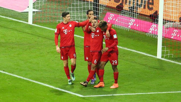 Pep Guardiola sacó una alineación titular sin Arjen Robben y sin Robert Lewandowski (probablemente decidió reservarlos para el partido de la próxima semana contra el Juventus) pero eso no pareció afectar el juego ofensivo del Bayern.