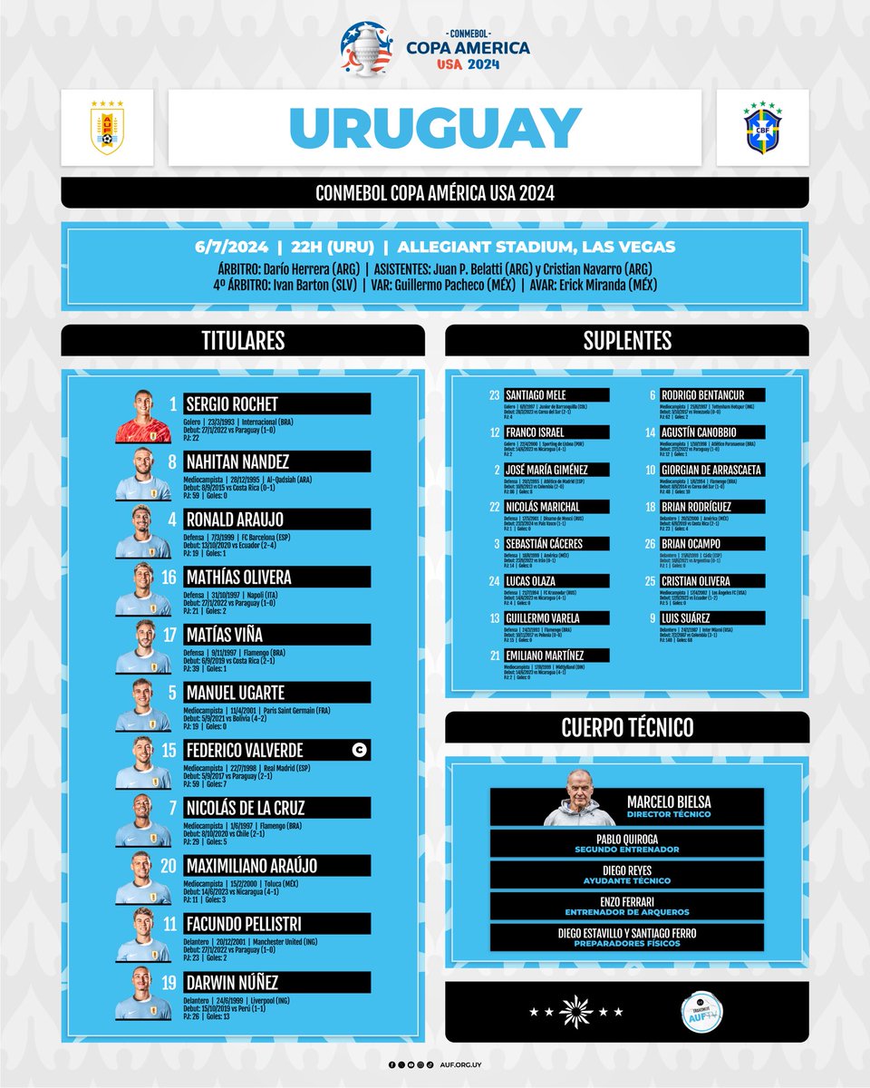 Uruguay venció por penales a Brasil el sábado 6 de julio del 2024 por los cuartos de final de la Copa América en el Allegiant Stadium. En el tiempo regular, ambas selecciones no se hicieron daño, el partido fue muy friccionado y con pocas ocasiones claras de gol.