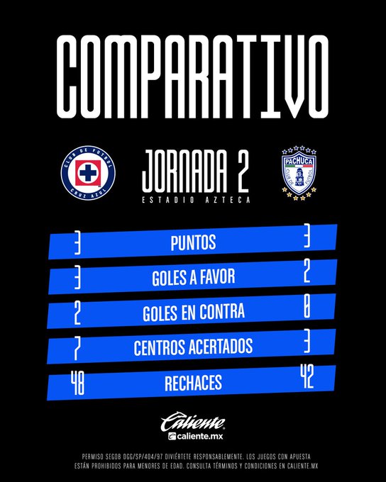 Cuadro comparativo de Cruz Azul vs Pachuca.