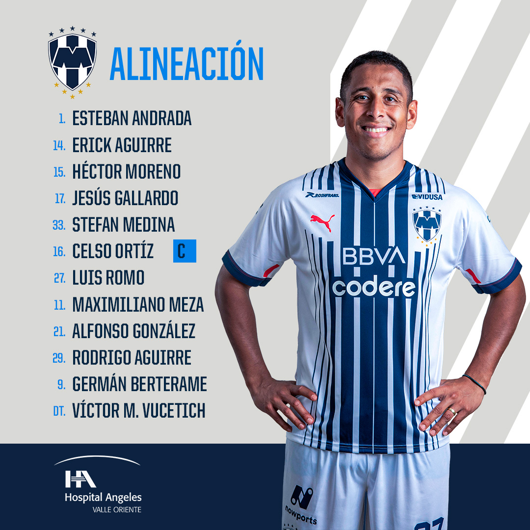 Monterrey: Esteban Andrada; Stefan Medina, César Montes, Héctor Moreno, Jesús Gallardo; Maximiliano Meza, Matías Kranevitter, Celso Ortiz; Arturo González, Germán Berterame y Rodrigo Aguirre. Entrenador: Víctor Vucetich.
