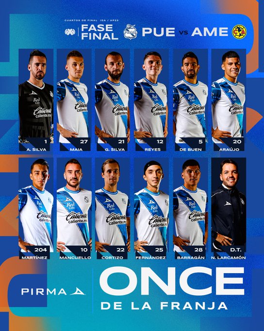 Puebla: Silva, Martínez, De Buen, Reyes, Lucas Jaques, Silva, Corizo, Mancuello, Fernández, Araújo y Barragán.