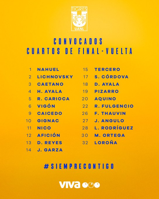 Alineacin @CEMEXMx.#SiempreContigo #EstoEsTigres pic.twitter.com/N7zJmYeQU0