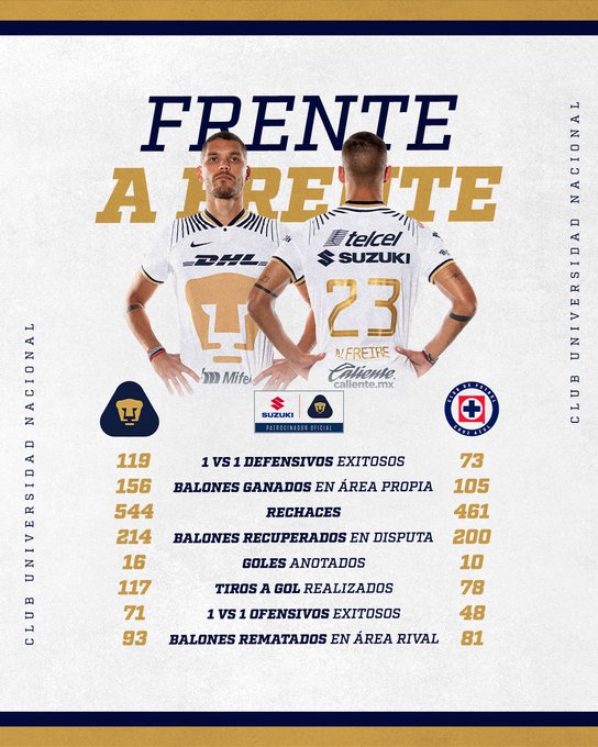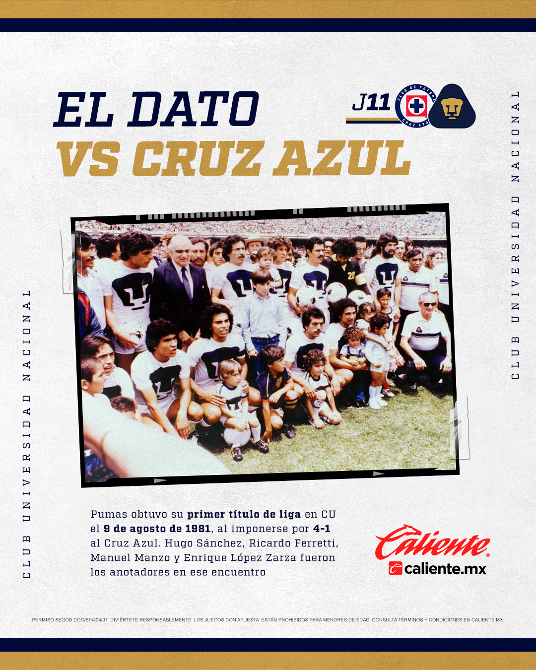 Pumas comparte un magnífico dato, con motivo del partido ante Cruz Azul.