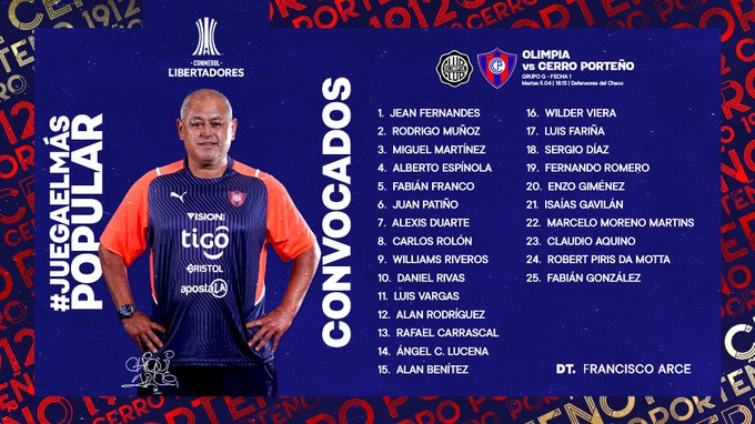 El choque más esperado del fútbol guaraní se disputará en la Libertadores después de 23 años. Mira los convocados de Cerro Porteño para enfrentar a Olimpia.