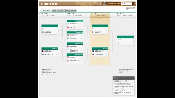 El equipo peruano clasificó a la segunda ronda del Grupo II de la Zona Americana donde recibirá a México del 15 al 17 de Julio. De salir vencedor en la llave enfrentará al ganador del Venezuela - El Salvador por un pase a la Zona I.