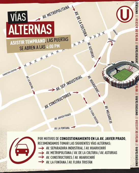 Esta es la lista de objetos prohibidos para el ingreso al Estadio Monumental.#LlenoMonumental #YDaleU pic.twitter.com/0YzNqVvEu6