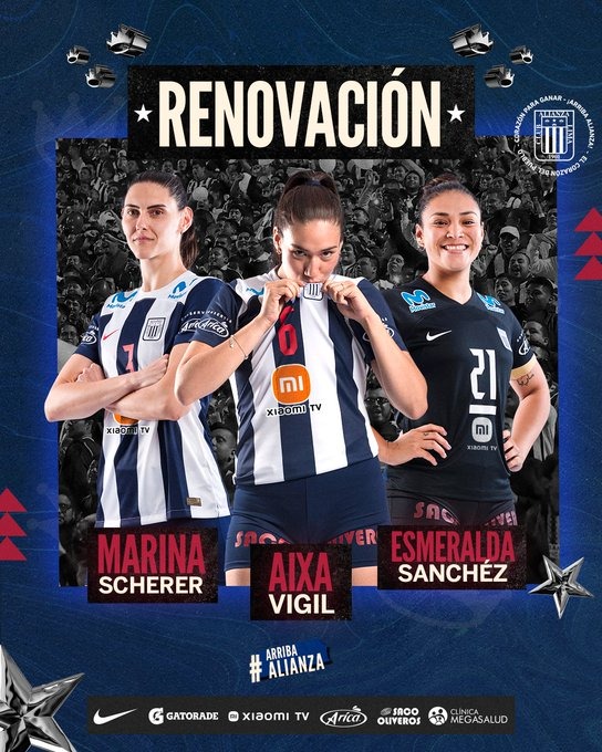 Después de perder la final de la Liga Nacional Superior de Voleibol Femenino 2022-23, Alianza Lima también anunció que la brasileño Marina Scherer y las peruanas Aixa Vigil y Esmeralda Sánchez seguirán en el equipo para la próxima temporada.
