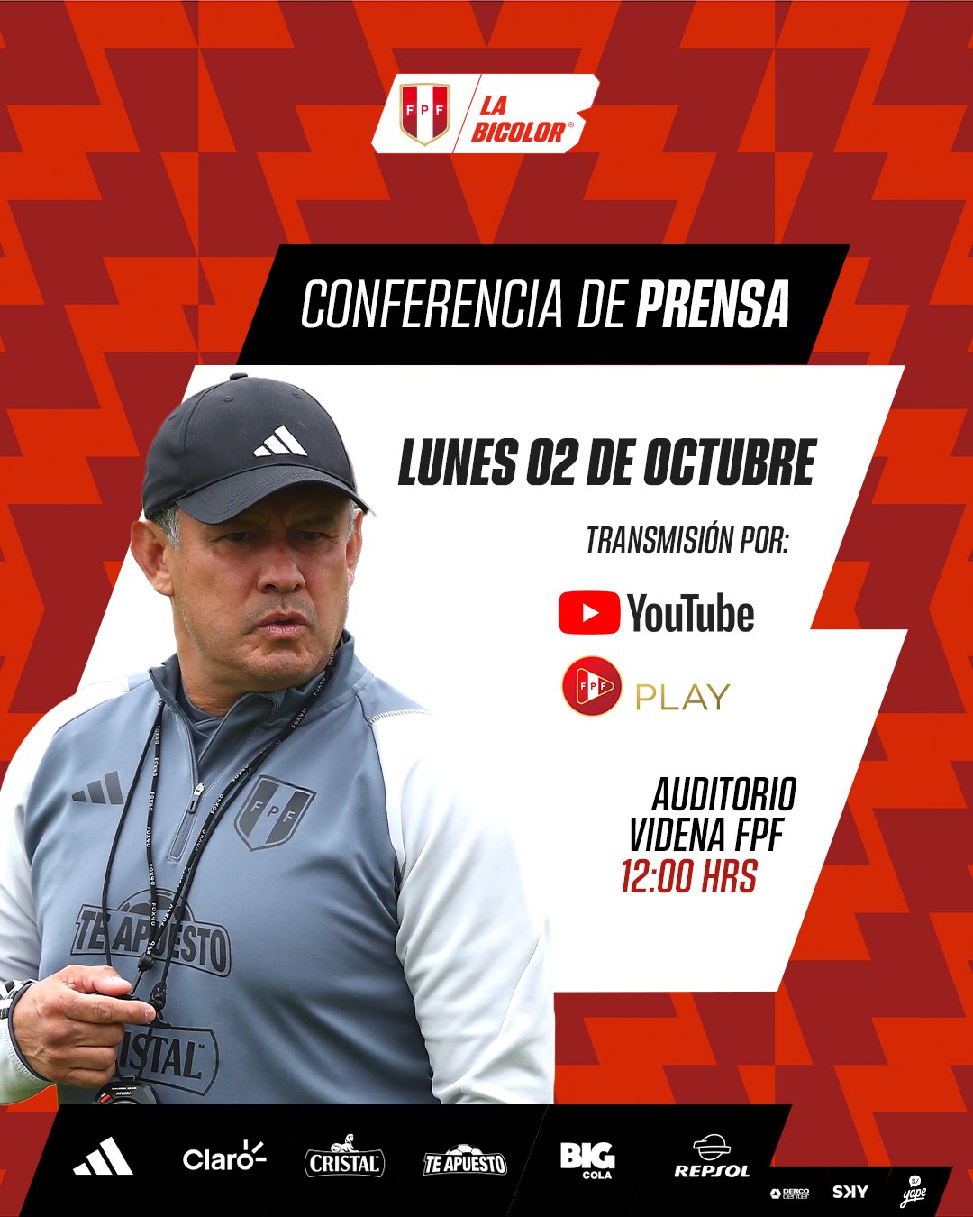 La lista de convocados se hará a conocer desde las 12:00 p.m. (hora peruana) en las instalaciones de la Videna y podrás seguir la transmisión desde FPF Play.