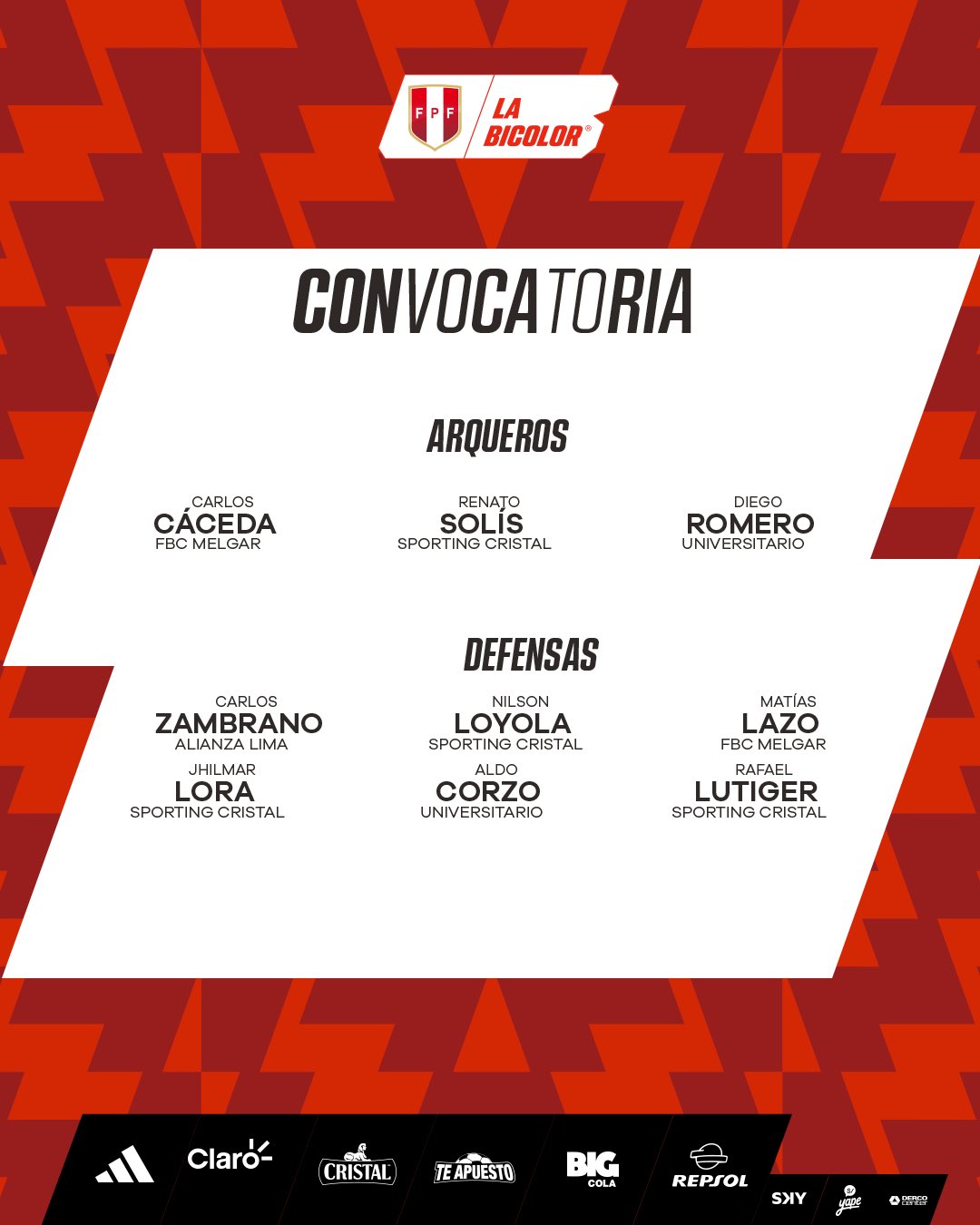 Defensas: Marco Huamán, Carlos Ascues, Alonso Yovera, Jhilmar Lora, Aldo Corzo, Matías Lazo, Emilio Saba, Sebastián Cavero, Rafael Lutiger.