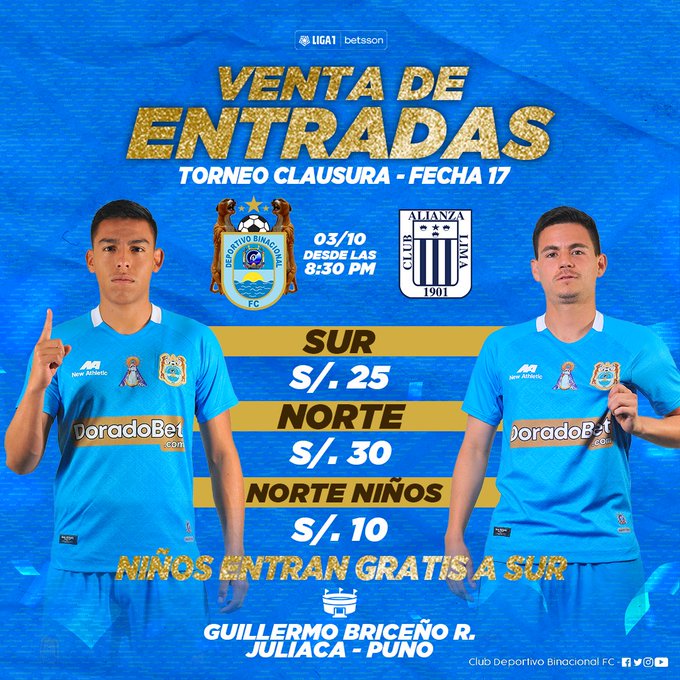 Precio de las entradas para ver el partido de Alianza Lima vs. Binacional en Juliaca.