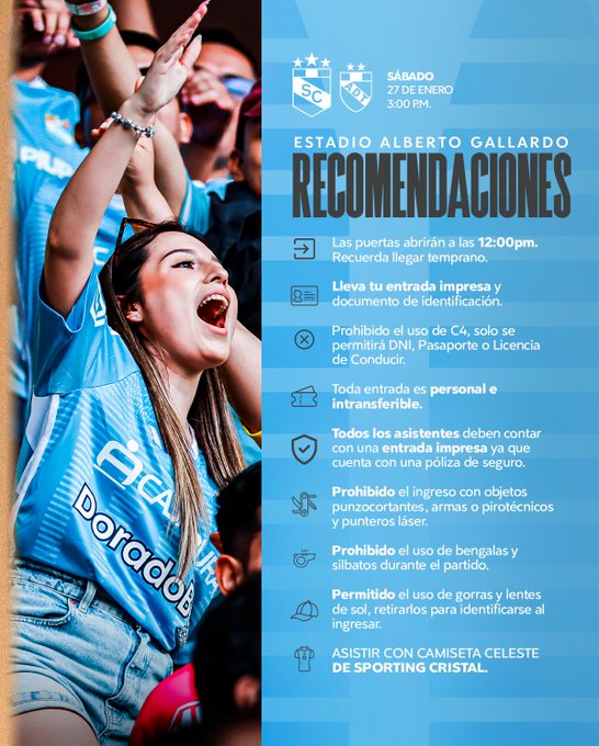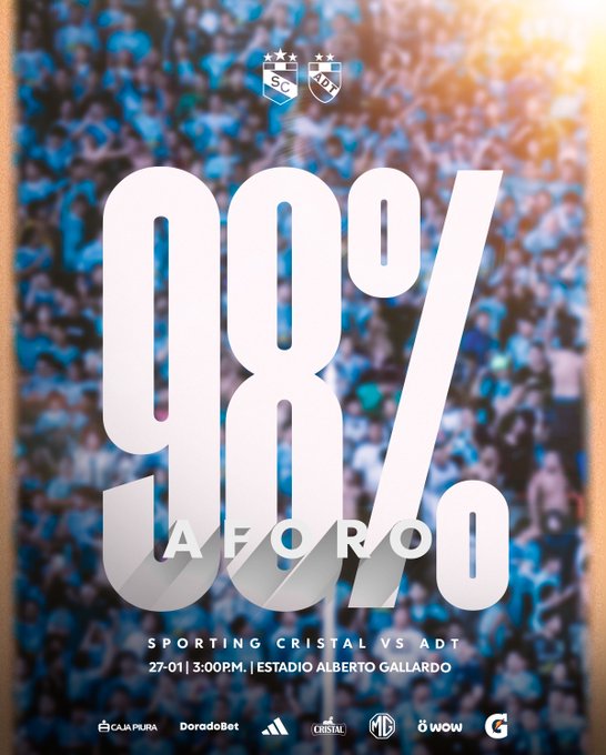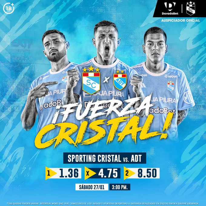 Sporting Cristal goleó 6-1 a ADT este sábado 27 de enero del 2024 por la primera jornada del Torneo Apertura de la Liga 1, desde el estadio Alberto Gallardo. El conjunto ‘celeste’ fue aplastante y apabulló a los tarmeños. Martín Cauteruccio (39′, 56′, 63′), Martín Távara (51′), Santiago Gonzáles (68′) e Ignacio Da Silva (73′) fueron los anotadores para los rimenses. Por su lado, Víctor Cedrón (22′) y Janio Pósito (90+7′) marcaron para los visitantes.