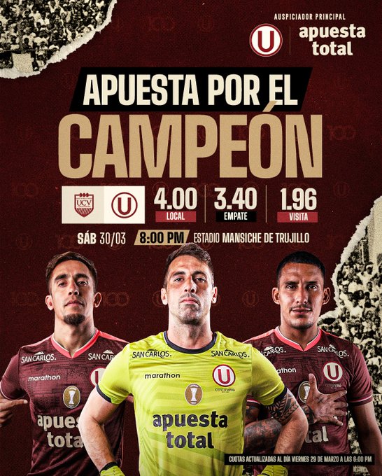 Apuestas del partido, Universitario vs. Vallejo.