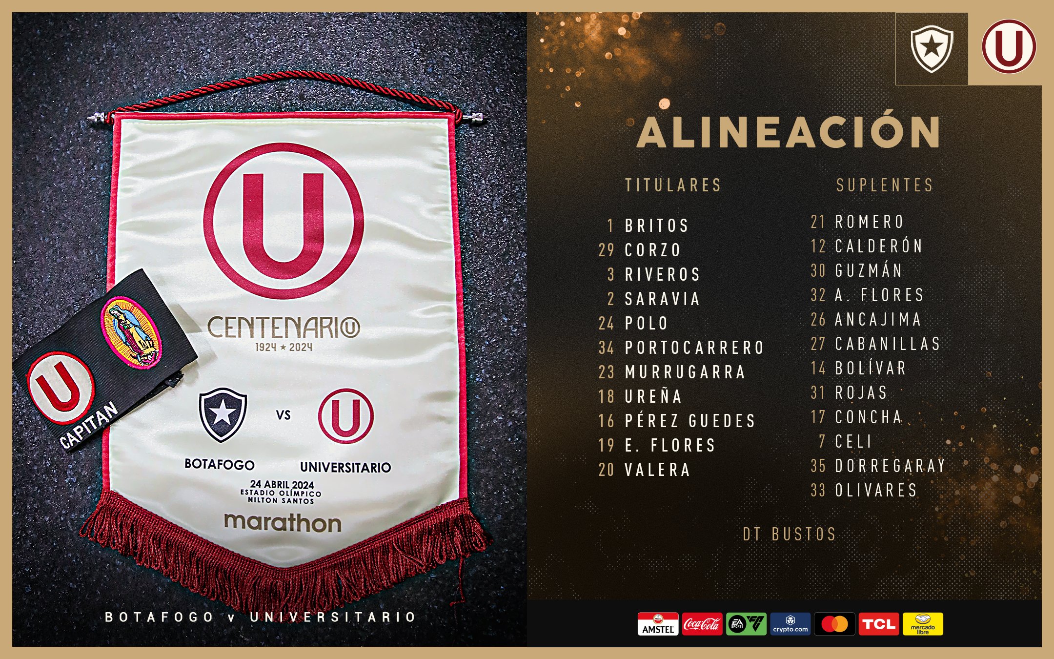 El partido de la U vs Botafogo se disputa el miércoles 24 de abril, desde las 5:00 de la tarde (hora peruana), en el Estadio Olímpico Nilton Santos.