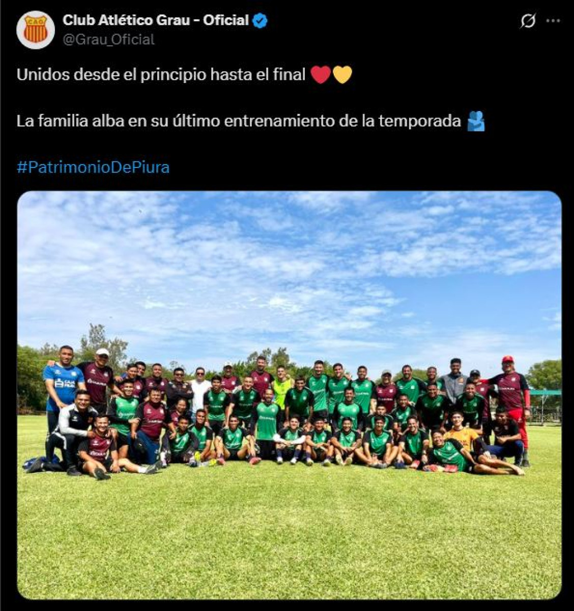 "Unidos desde el principio hasta el final. La familia alba en su último entrenamiento de la temporada", publicó Atlético Grau con fotos de su última sesión de trabajo.