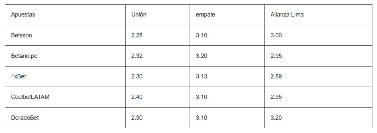 Alianza Lima vs Unión pronóstico: cuotas y apuestas